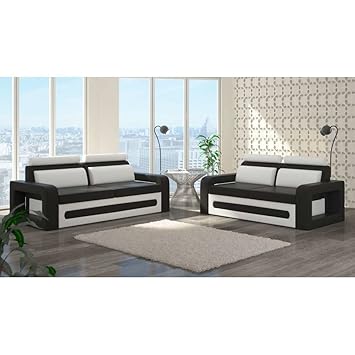 Canape simili cuir noir et blanc. Rejoignez la communaute maisons du monde. Bicolore gris et blanc ou bicolore gris et noir disponible en canape 3 places 2 places et fauteuil tetieres relax multipositions. Lit cuir celia contemporain.
