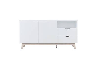 Buffet Scandinave 2 Portes 3 Tiroirs Bois Clair Et Blanc Kengo