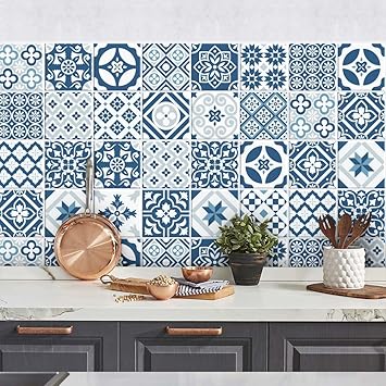 24 Pieces Carrelage Adhesif 20x20 Cm Ps00065 Bleu Profond