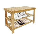 Songmics Banc Etagere A Chaussures En Bambou Naturel 3 Niveaux Ideal