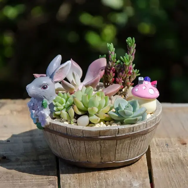 Home Flower Succulent Bonsai Trough Box Gray Rabbit Plant Bed Diy
