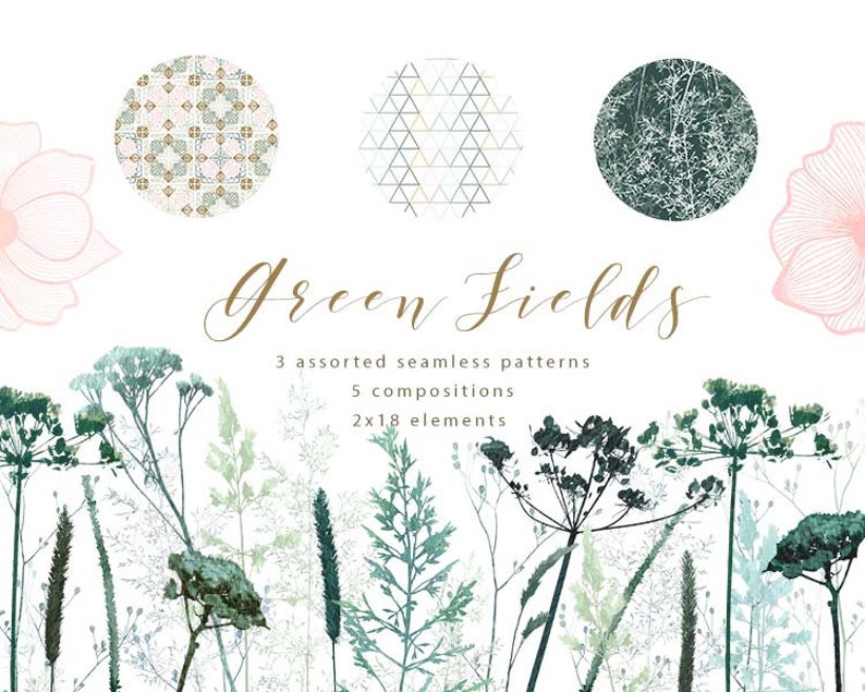 Cliparts Vert Peints A L Aquarelle Fleurs Des Champs Etsy