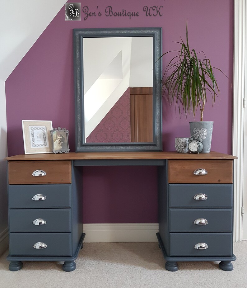 Gris Fonce Coiffeuse Avec Miroir Bureau Ordinateur De Etsy