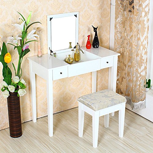 Blanc Coiffeuses Avec 3 Miroirs 4 Tiroirs 1 Tabouret Bureau De