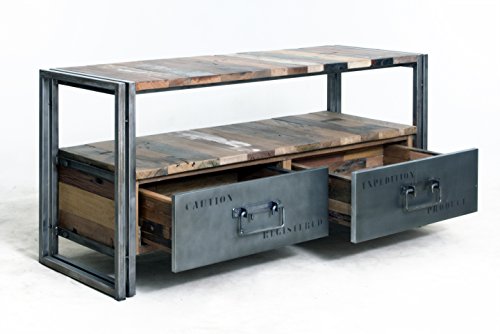 Meuble Tv 2 Tiroirs 112x40x55 Style Industriel En Bois De Bateau