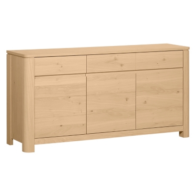 Il est disponible en deux dimensions soit 3 portes et 3 tiroirs ou 2 portes et 3 tiroirs. Il se compose de 2 portes comprenant chacune 1 etagere interieure et 3 tiroirs centraux. Dun meuble buffet qui tient la route question style autant que sur le plan pratique.