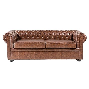 Canape 2 A 3 Places En Simili Cuir Marron Vintage Chesterfield