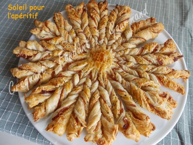 Un aperitif gourmand avec ce soleil qui se savoure rayon par rayon. Voici un soleil feuillete jambon gruyere qui ensoleillera votre table. Mais quoi quil en soit chacun va se regaler en tirant une branche de ce soleil feuillete tres croustillant.