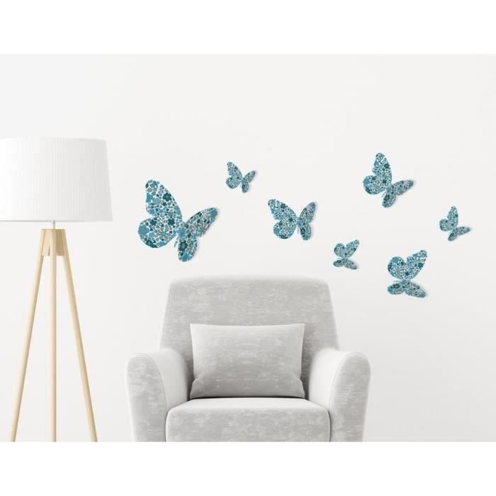 Sticker Deco Papillons 3d Liberty Azur Pvc Bleu